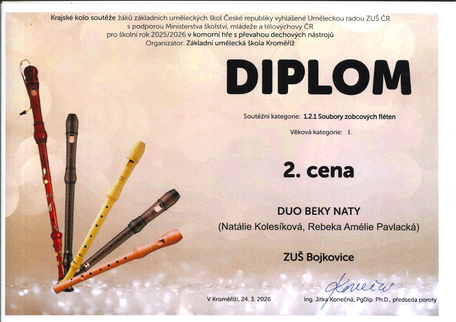 Flétnové duo má v "kraji" 2. cenu