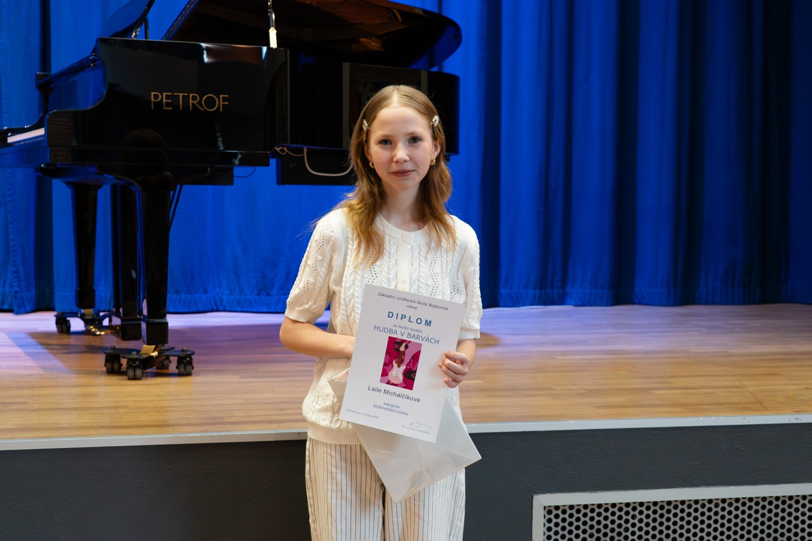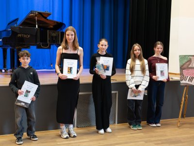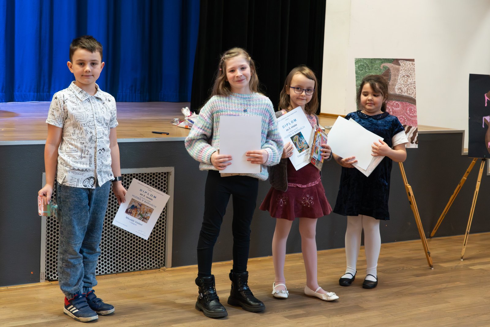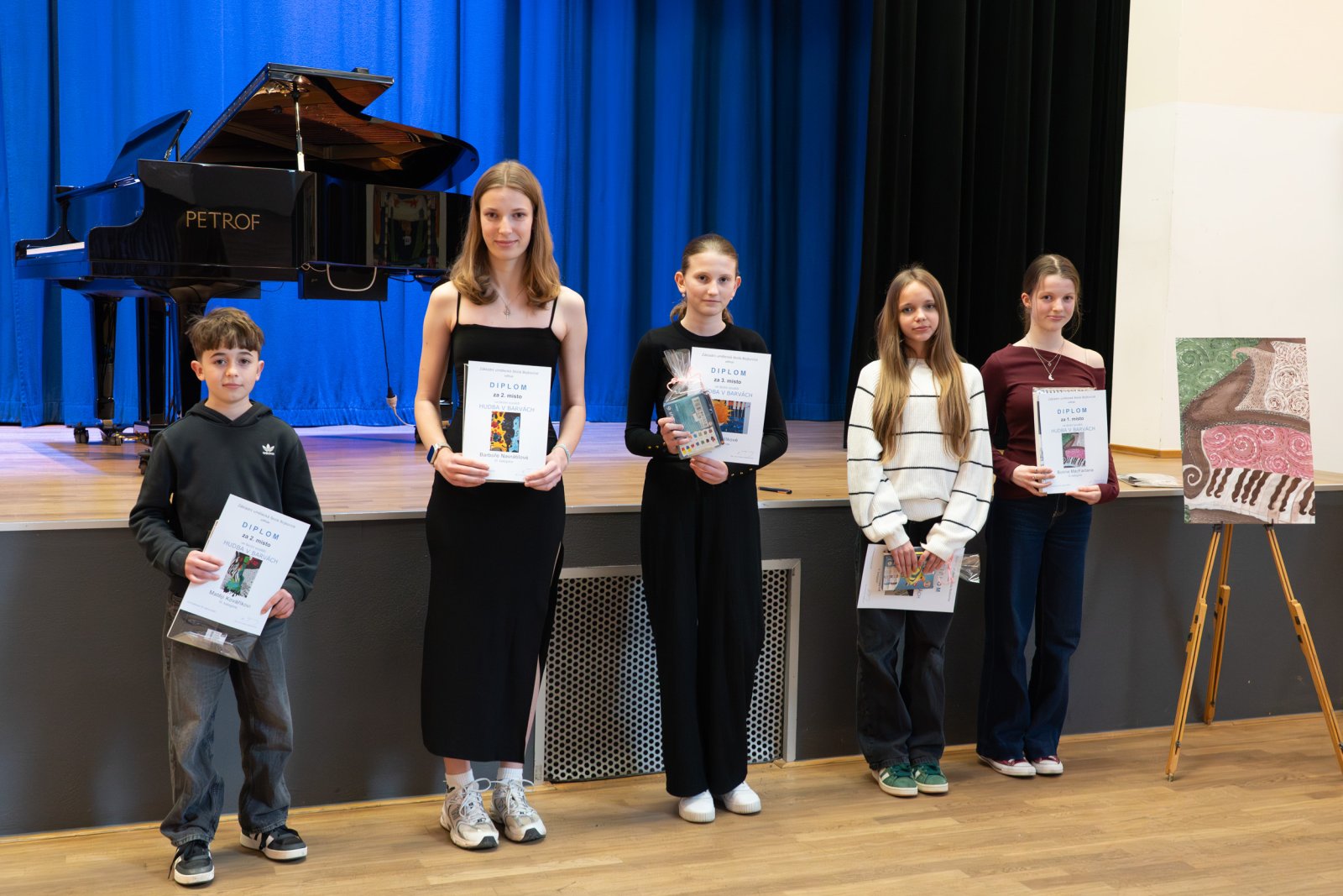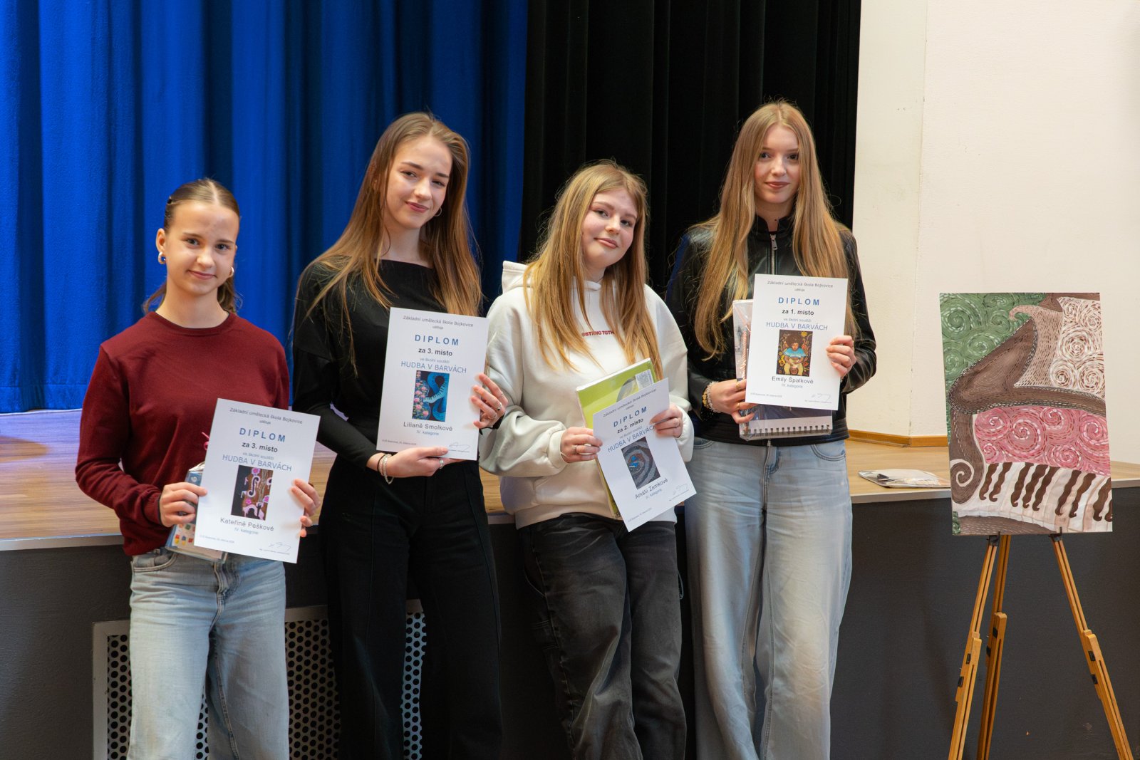Slavnostní vyhlášení proběhlo v pondělí 31. března v sále školy za účasti autorů oceněných prací a blízkých rodinných příslušníků. V úvodu přednesla výtvarnice - a zároveň také klavíristka - Veronika Machů skladbu Jiřího Vřešťála s názvem Modrá (z klavírního cyklu Barvy).