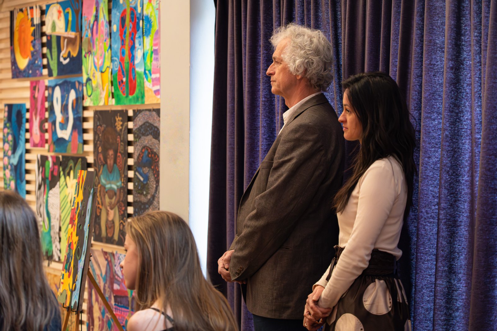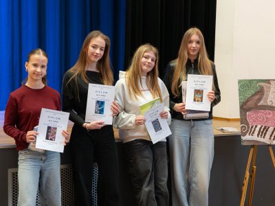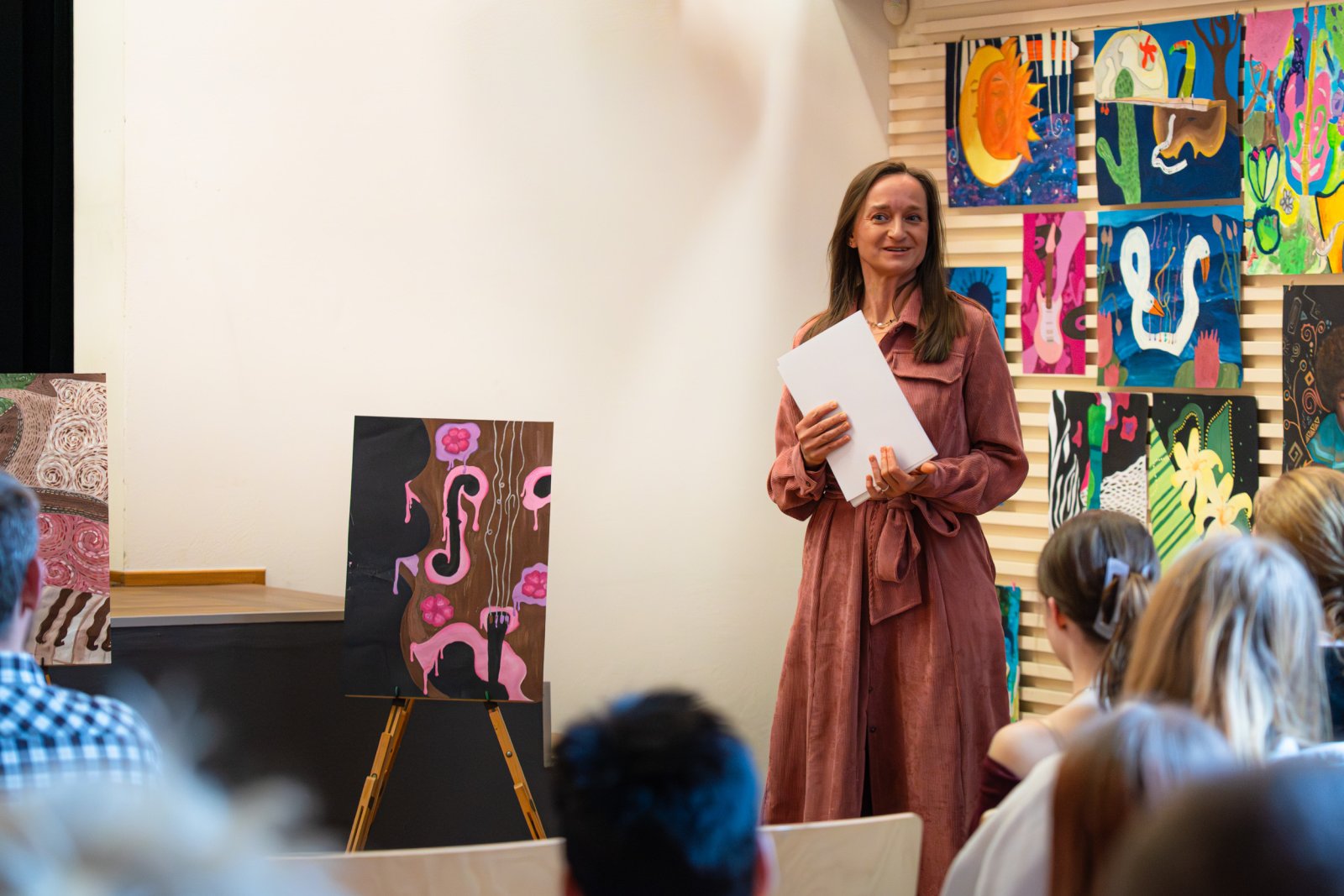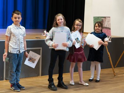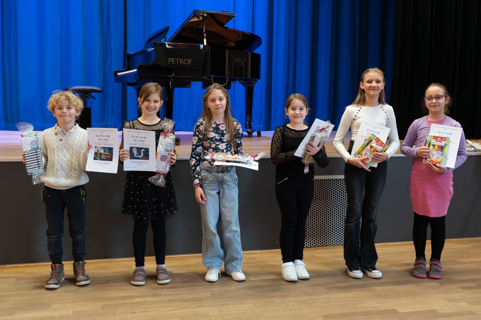 Slavnostní vyhlášení proběhlo v pondělí 31. března v sále školy za účasti autorů oceněných prací a blízkých rodinných příslušníků. V úvodu přednesla výtvarnice - a zároveň také klavíristka - Veronika Machů skladbu Jiřího Vřešťála s názvem Modrá (z klavírního cyklu Barvy).