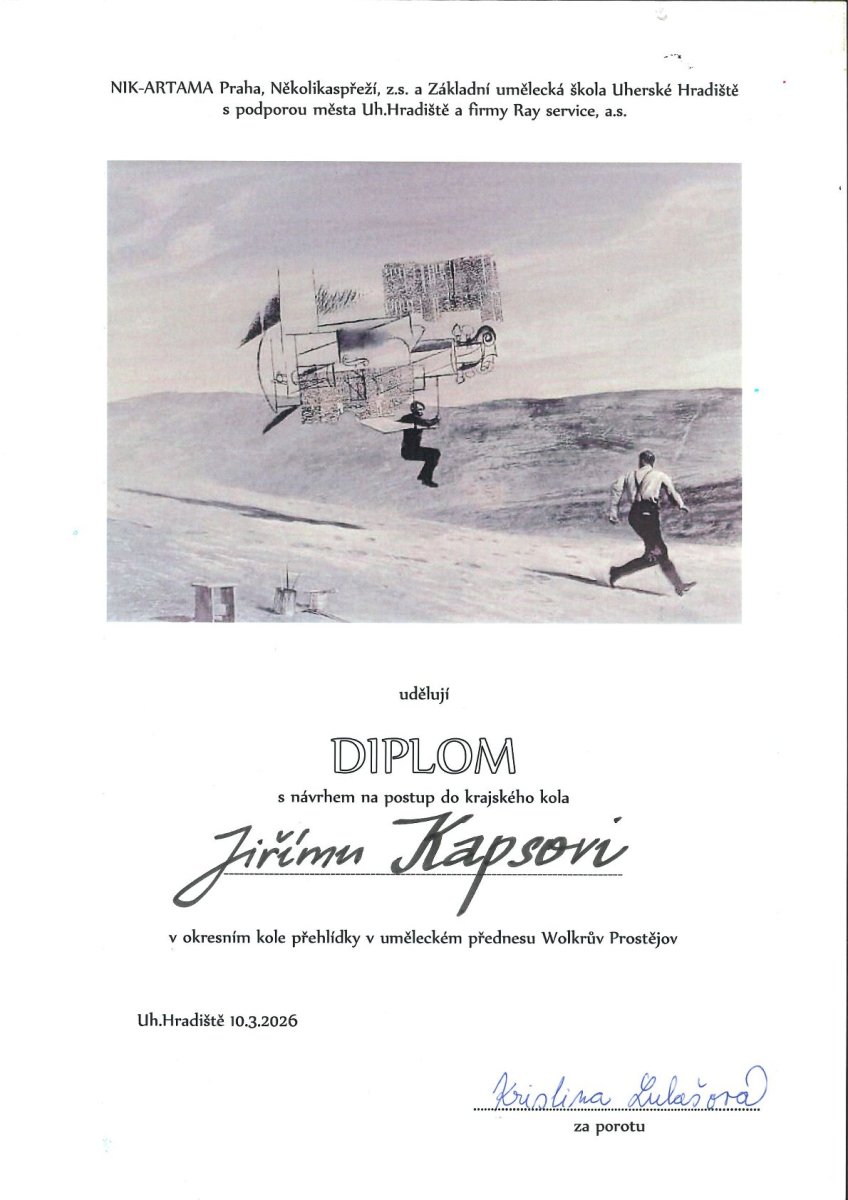 V soutěži sólového přednesu Wolkrův Prostějov postoupil z okresního kola do krajského Jiří Kapsa.