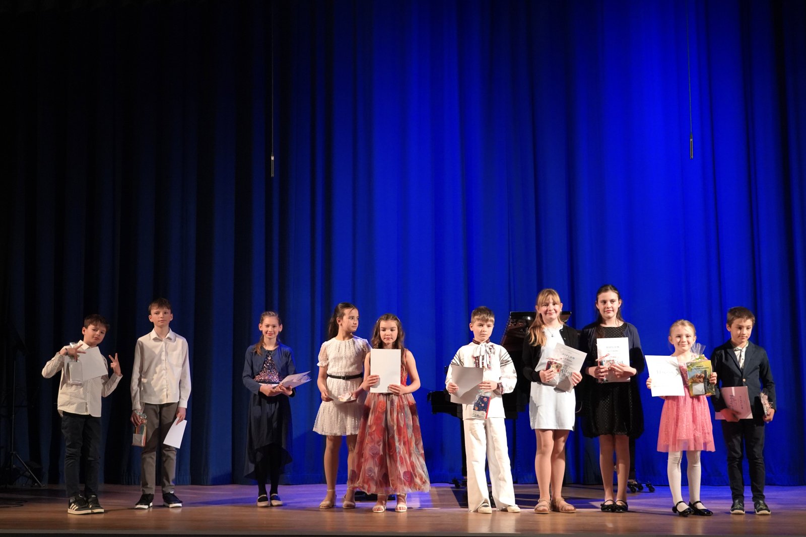 Účastnici koncertu - interpreti nejlépe oceněných výkonů ve školní soutěži hudebního oboru a třech …